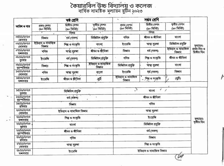 ৬ষ্ঠ ও ৭ম শ্রেণির বার্ষিক সামষ্টিক মূল্যায়ন রুটিন